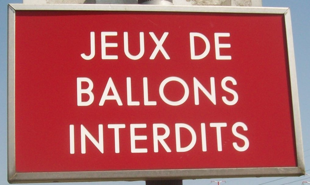 This sign was posted by the ping pong tables and translated it says that playing with balls is forbidden. So how do you play ping pong?