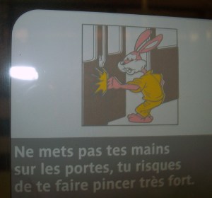 Jonah saw this yesterday on the Metro and told me what it meant. Bunnies cannot get off the train.