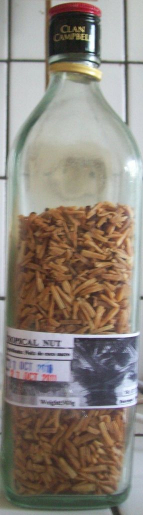 In case you see pictures or hear about all these missionaries with whiskey bottles in their homes, I thought I would share about them. On any given day, you could find a whiskey bottle in our home. Why? Because NOTHING is wasted! Empty whiskey and other liquor bottles with a screw on/off cap, are reused for packing and selling peanuts, toasted coconut, a snack called chin chin and anything that can fit through the opening and pour out for use. The packaging makes it easy to see the contents and the bottle protects the product from insects. While we are on the subject, water bottles are reused for kerosene and oil distribution. You can walk into any small boutique and purchase a water bottle’s worth of kerosene or oil.