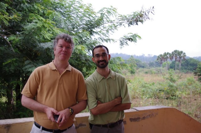 David and Mark standing behind the office in Ombessa. Mark is with Wycliffe Associates and was first here in November for the initial evaluation.