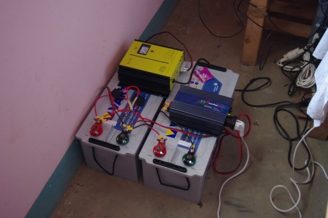We added two batteries and a power inverter to power the laptops in case of extended power outages, the batteries charge off of commercial power and should be able to provide power for 5-7 days.
