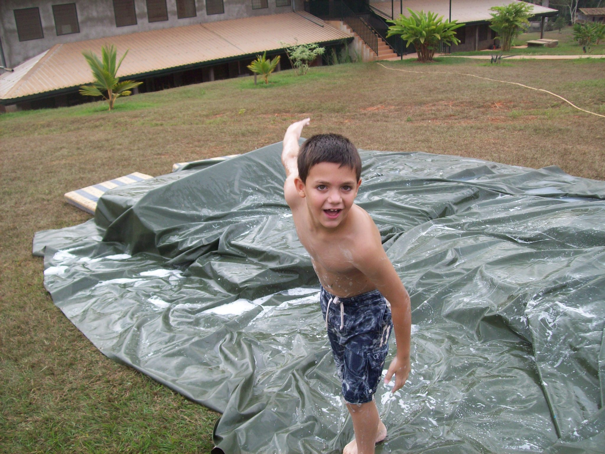 Last Saturday at RFIS (Rain Forest International School) the 9th grade class was doing a fund raiser for their class functions. The fund raiser required children to pay 1000 CFA ($2) to enter the fun, first they soap themselves up to see how far they could get on the slip and slide, and they also had several other water activities and ice cream.