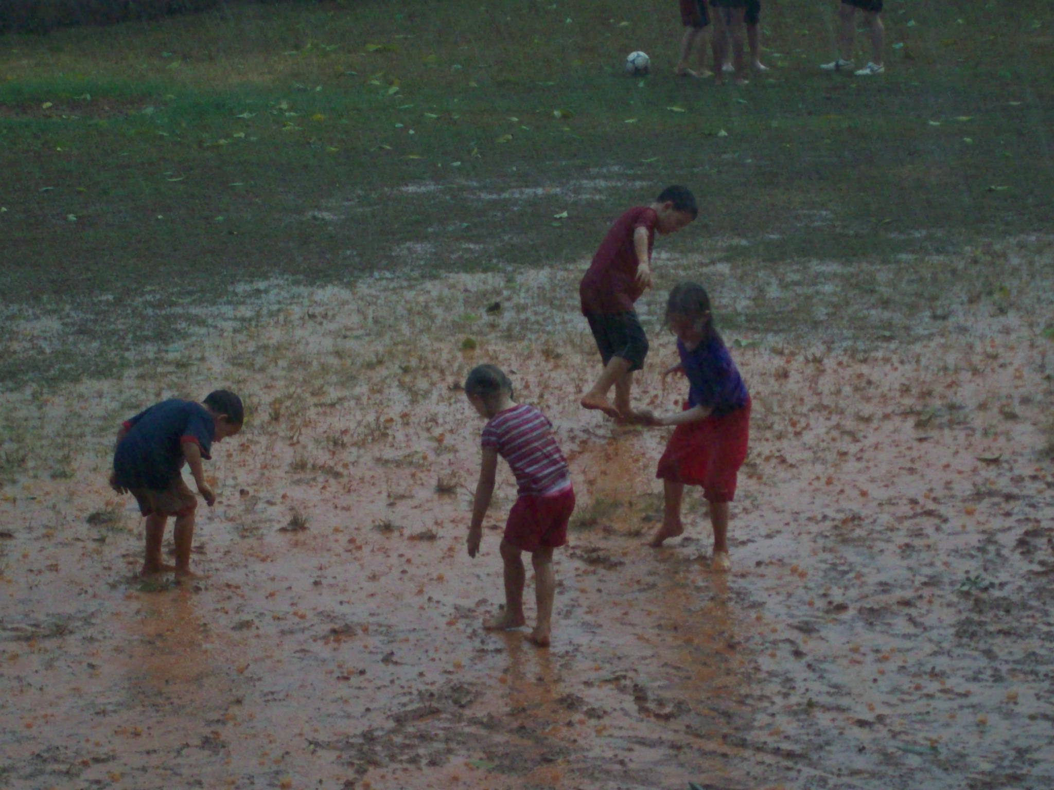 After we got home we had our first rain since October, which translates to fun in the mud. I think the kids had more fun in the mud then they did with the soap and the slip and slide. Thankfully they had enough soap all over their bodies that the mud came right off.