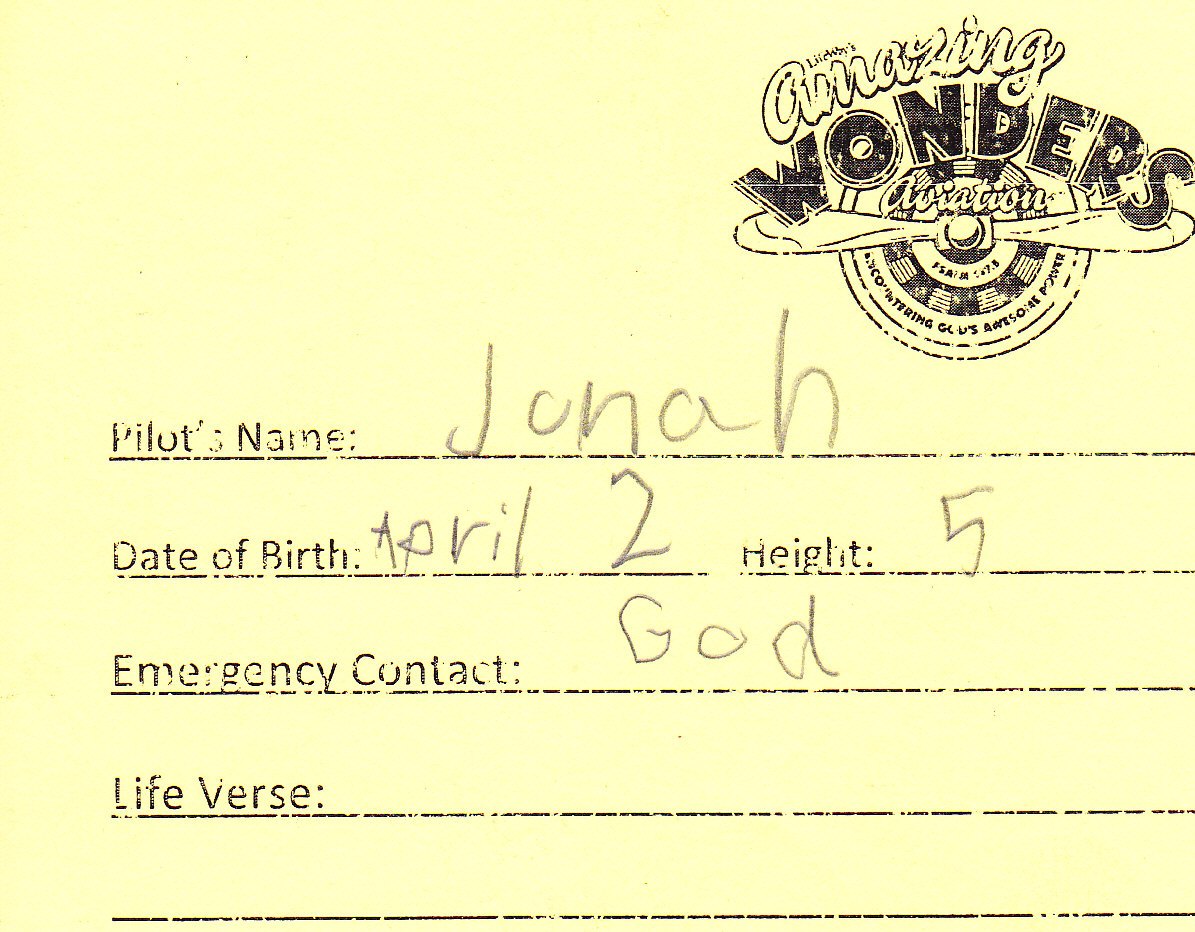 That is awesome. Jonah – you can’t go wrong with God as your contact!
