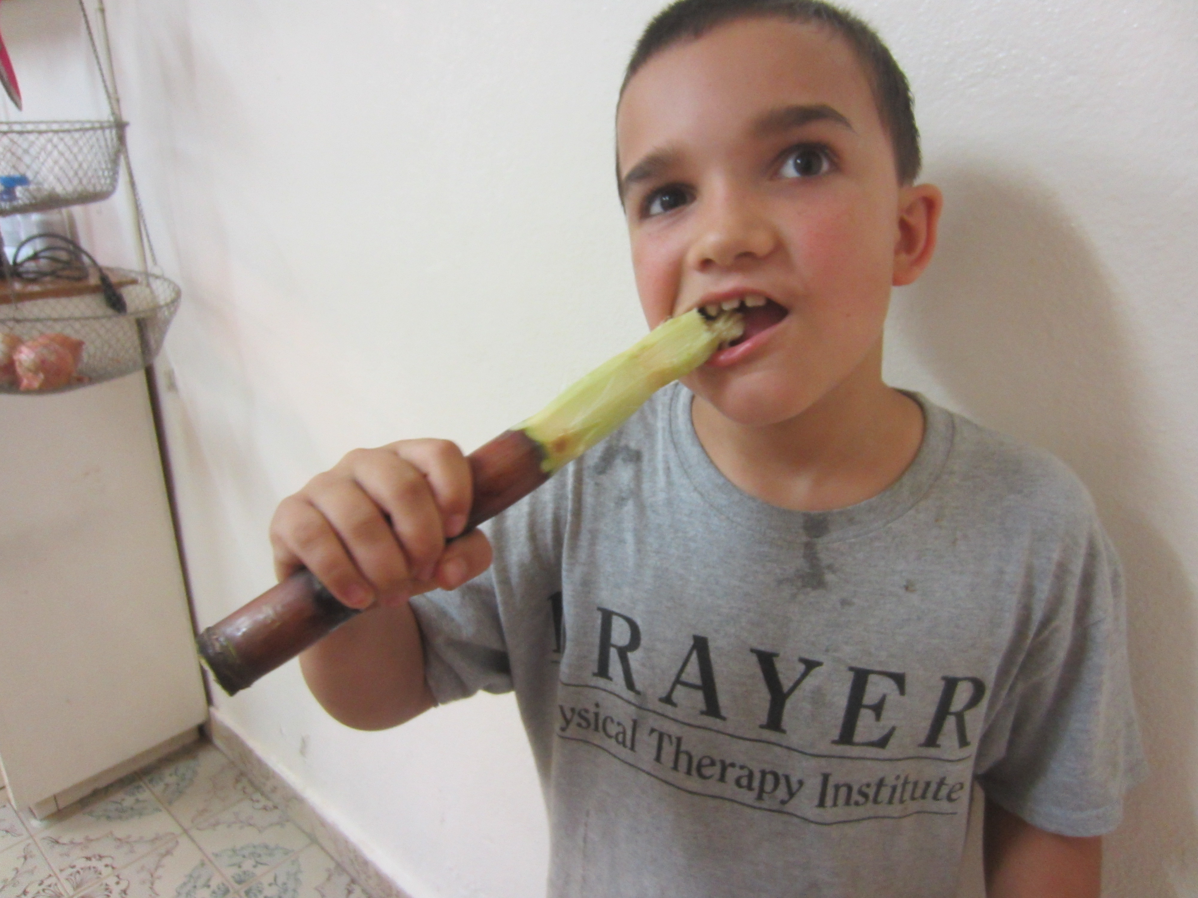 They’ve seen people sucking on sugar cane.  Joshua likes to know what things are, but doesn’t feel the need to try whatever it is.  Jonah on the other hand, likes to try it.