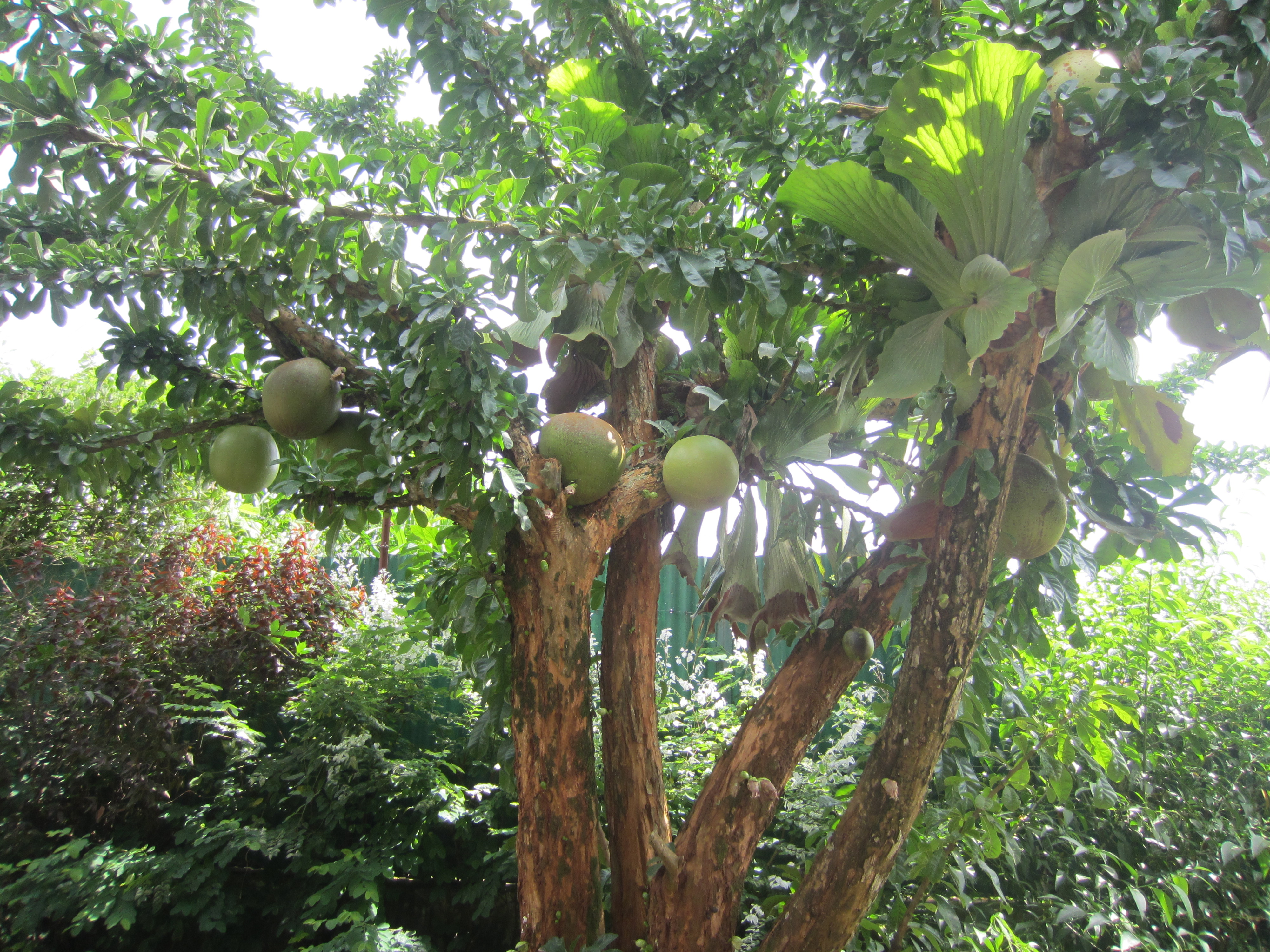 We had a tree like that at CABTAL and I thought that is what Lois cooked and called bread fruit. Someone else told me the fruit can be dried like a gourd in the U.S. and made into bowls. I was amazed that something so large grew on a tree. They must not be too heavy!