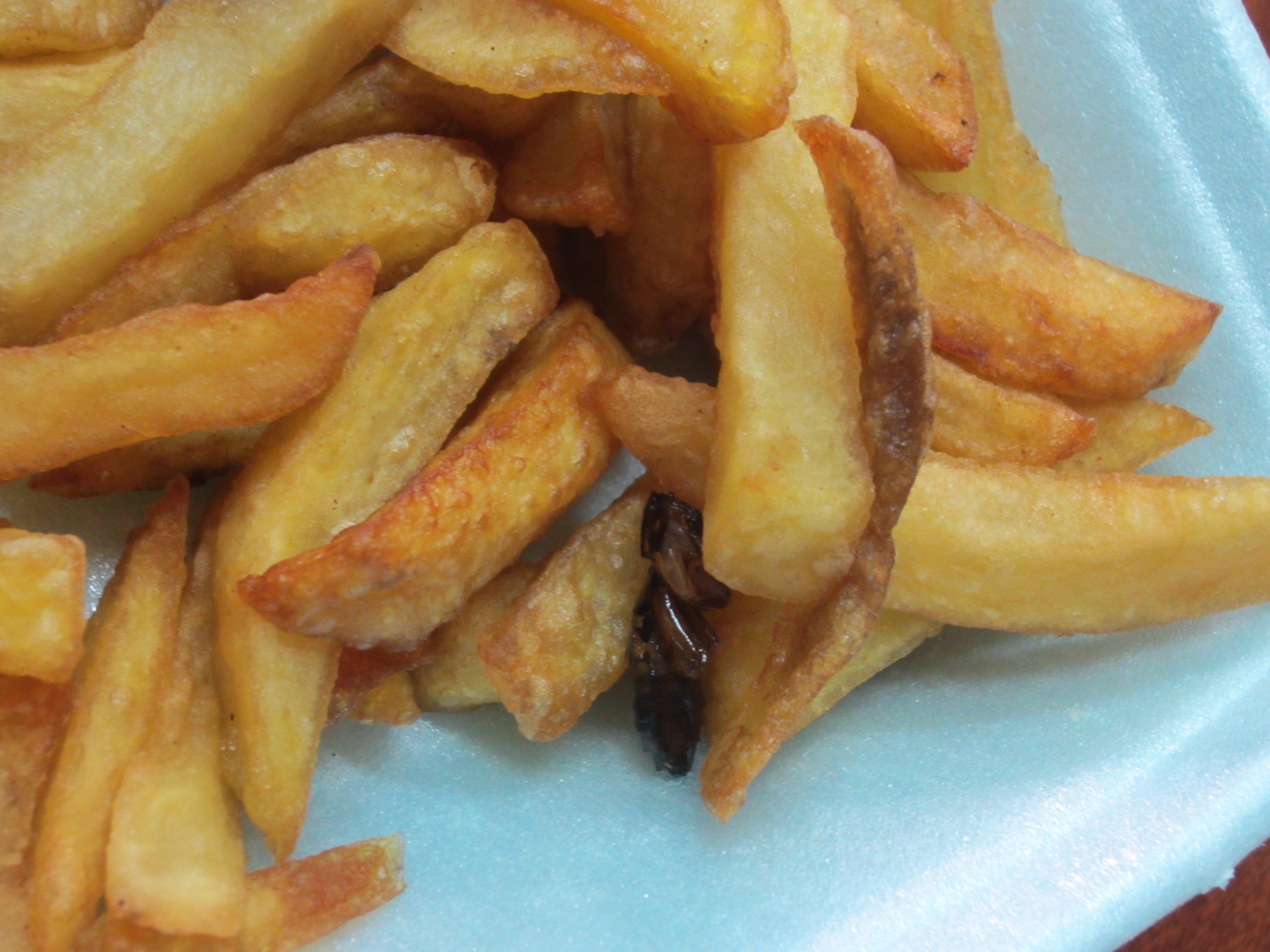 Yep – I was thinking it had the shine of a cockroach, and then I thought, well, anything fried is going to have a nice oily shine to it… 🙂 Probably the heat of the frying would kill all germs, but… And they look like really nice fries apart from that, which makes it harder to chuck them out!! I used to have days where I just wished something NICE would happen… I know how you feel!