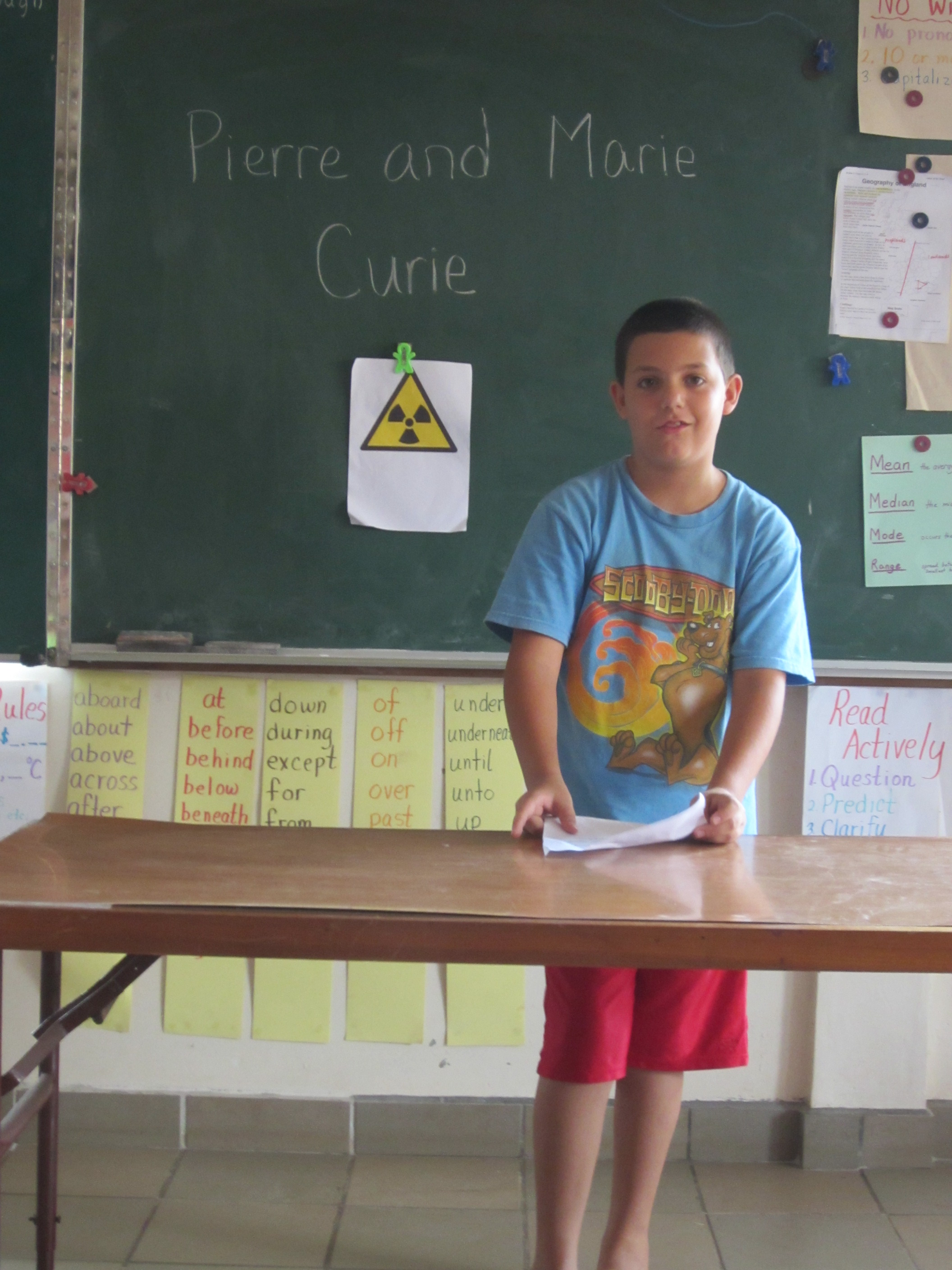 His class has been studying the History of Medicine and he was assigned to present what Pierre and Marie Curie did to impact medicine. He researched to find more details about the Curie’s (including the way Pierre died, which he included in his presentation). He wanted to type his presentation by himself and find a visual aid for the presentation. I was proud and in awe of how he took responsibility for it all. Once his presentation was printed, I urged him to practice it several times so when his nerves are high, he will be comfortable with his material. He practiced several times and even looked up from his paper.