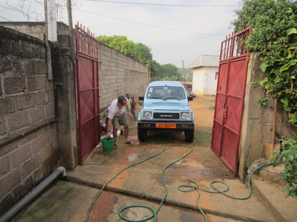 The children in our neighborhood are curious about us strange white people. When we open our drive gate they love to peer inside to see what’s behind the gate. Many of them have been into our home, but that doesn’t stop the peering. Usually if we wash the car, it’s behind closed gates, however, our car was extra muddy from the mudslide, so David decided to park it just outside our gate to wash it. This decision proved to be quite fun for the neighborhood children.