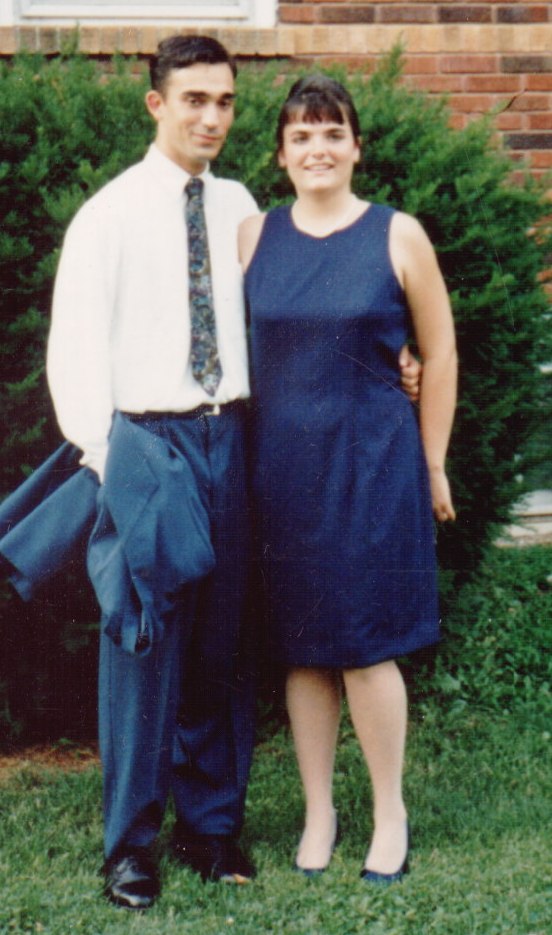 On May 8th, 1996, while dancing at a club on ladies night with friends during finals week of my sophomore year at university, there was a very handsome man who came bobbing up and down behind me to dance. As I turned around I saw David. That night is planted in my memory – what we talked about, what I was wearing, giving him my phone number, the excitements and worries if he would call me, etc… On May 10th, 1996, we had our first date at the movie theater to see the movie Twister.