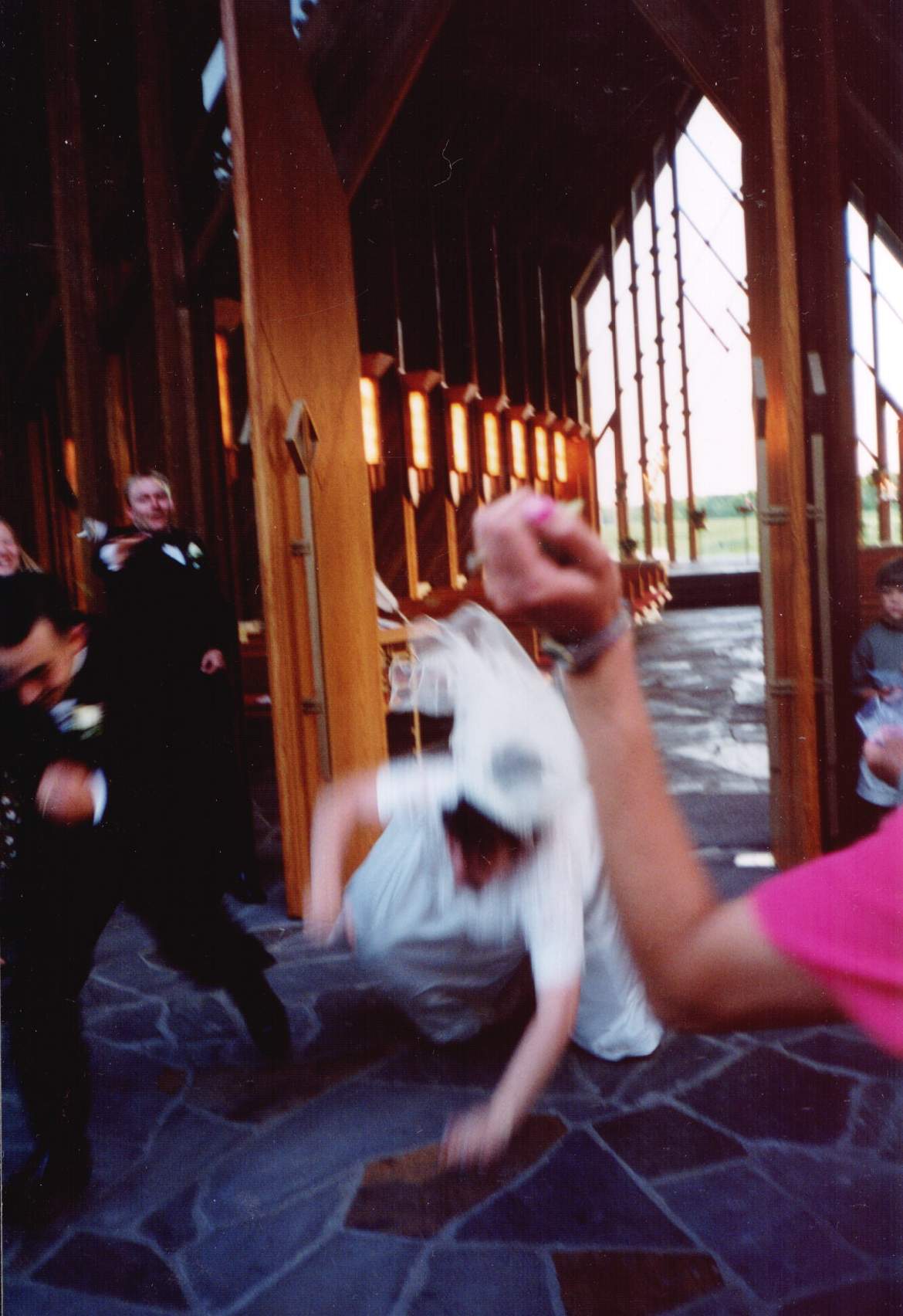 still don’t have an answer to why David is running away rather than catching his bride’s fall? 😉